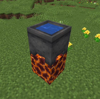 To use Cauldron Alchemy, you must place a Cauldron on top of a Magma Block, then right click the Cauldron. This will open the Cauldron Alchemy menu. Below is the minimal build to use Cauldron Alchemy